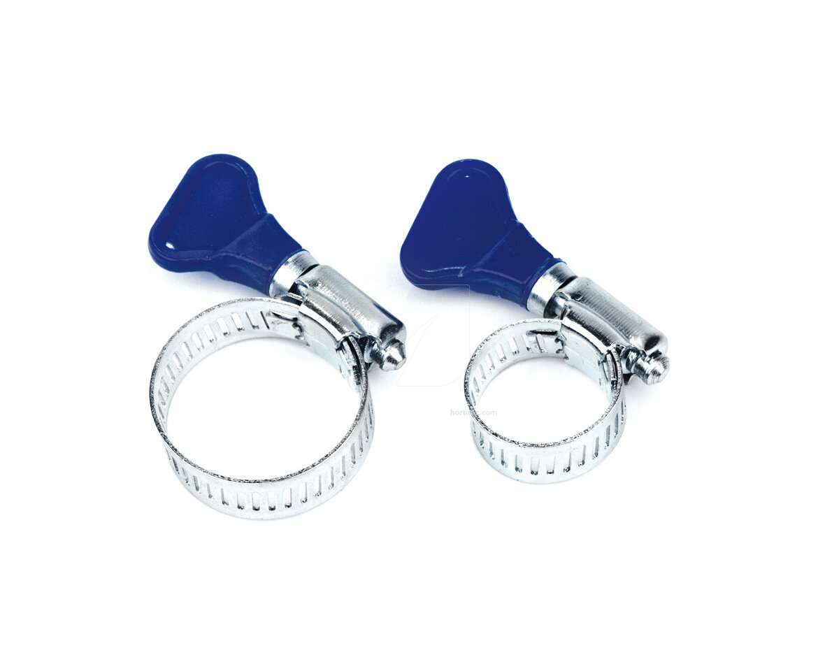 Abrazadera ajustable manualmente para apretar o soltar según la presión deseada y de forma segura. Este ajuste es muy útil para fijar mangueras o sistemas de riego, disponible en dos tamaños distintos.