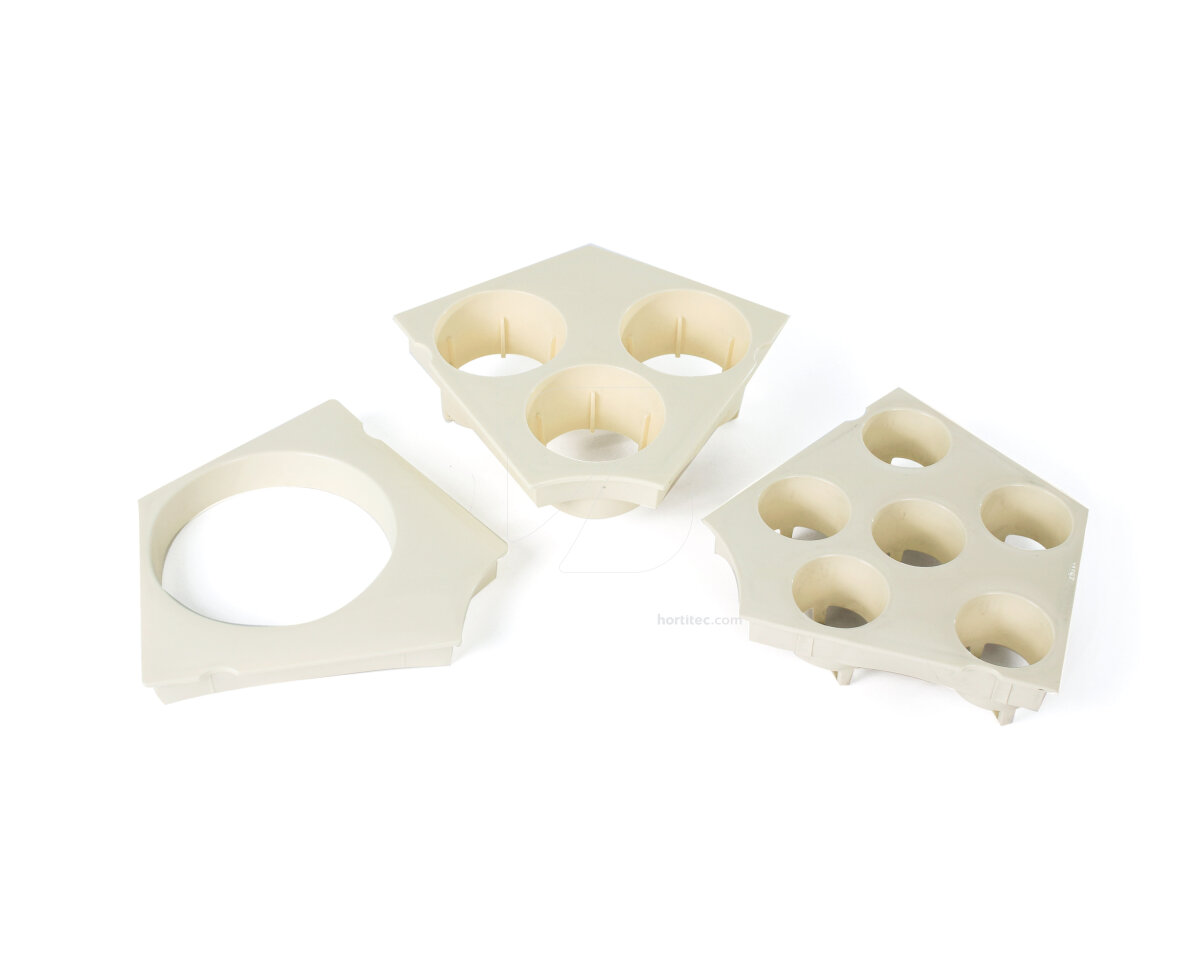 Este juego de 6 adaptadores para macetas se utiliza para el sistema modular de enraizamiento de esquejes de RainForest 2.