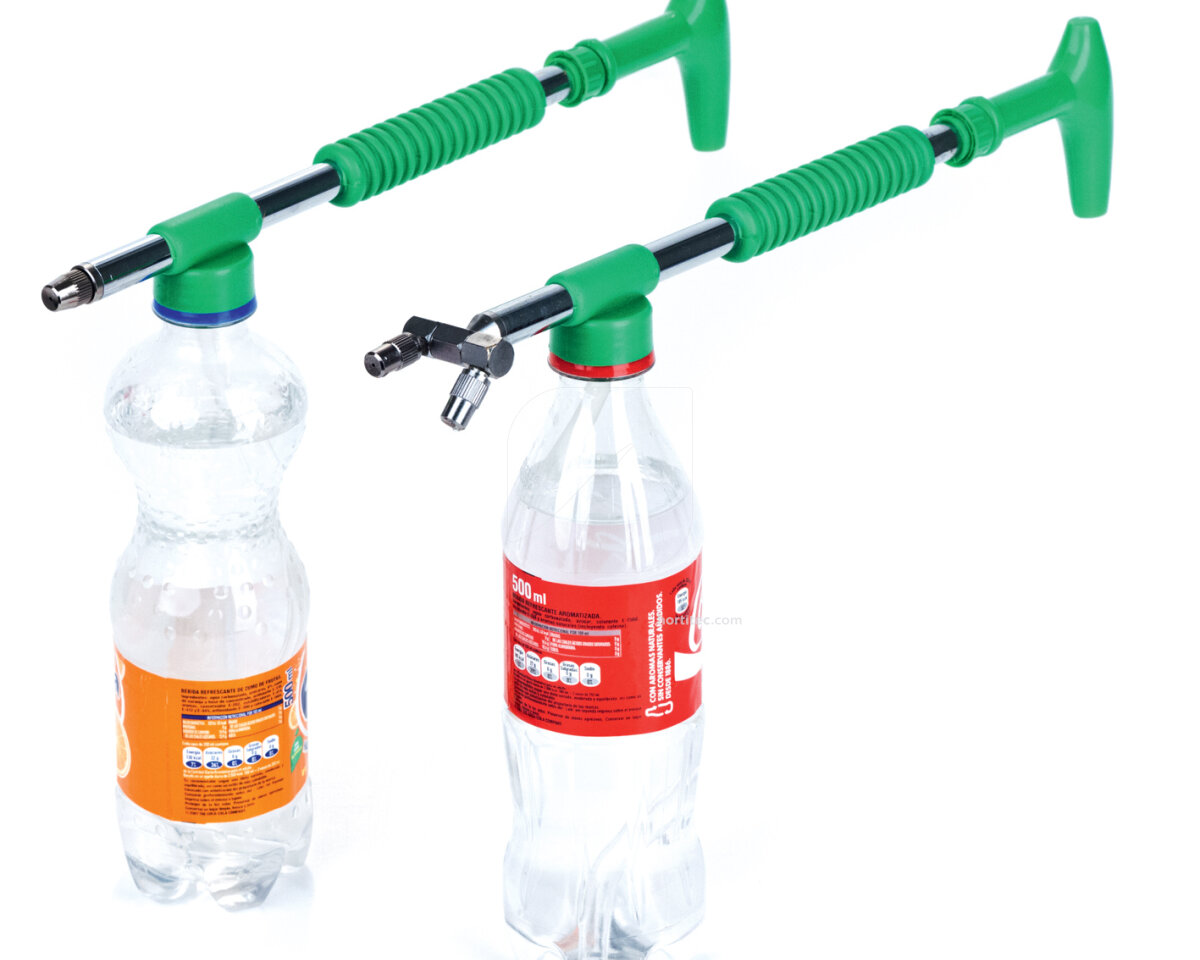 Este pulverizador para riego ajustable en botellas de plástico tiene boquilla metálica simple o doble.