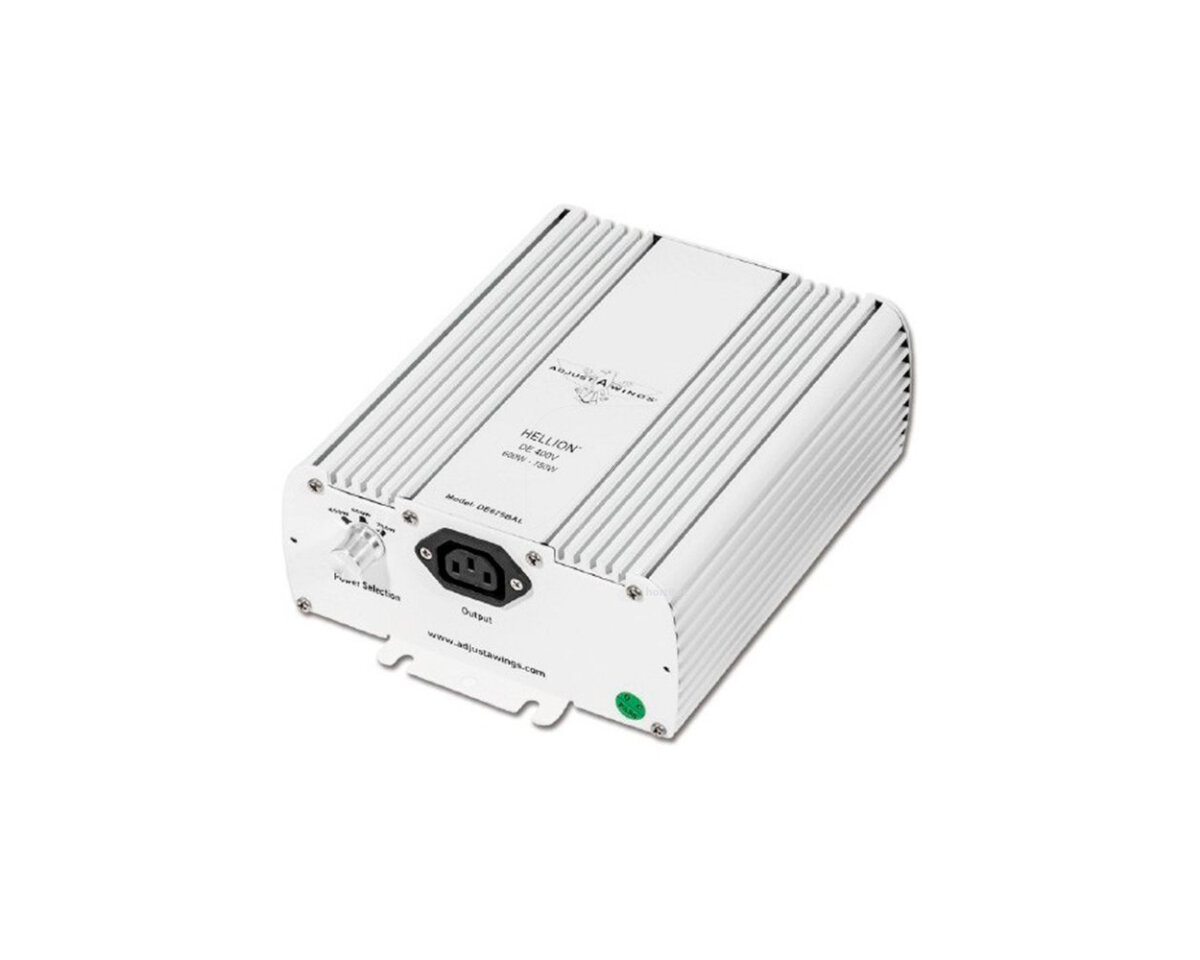 EL Balastro Hellion D.E. De Adjust-A-Wings®, es un balastro pensado para los cultivadores. Éste cuenta con conexiones IEC e incluye soporte para colgar y cable de alimentación homologado.