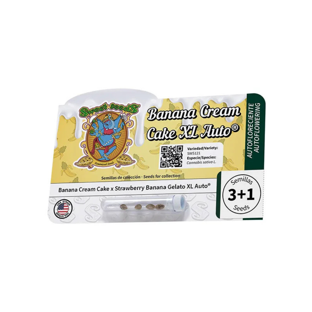 Banana Cream Cake XL Auto® es una semilla autofloreciente XL de perfil moderno, creada para quienes buscan una combinación muy atractiva de alta potencia, gran producción de resina y un aroma “postre” muy marcado. Completa su ciclo con rapidez y desarrolla plantas vigorosas, compactas y productivas, aptas tanto para interior como para exterior.