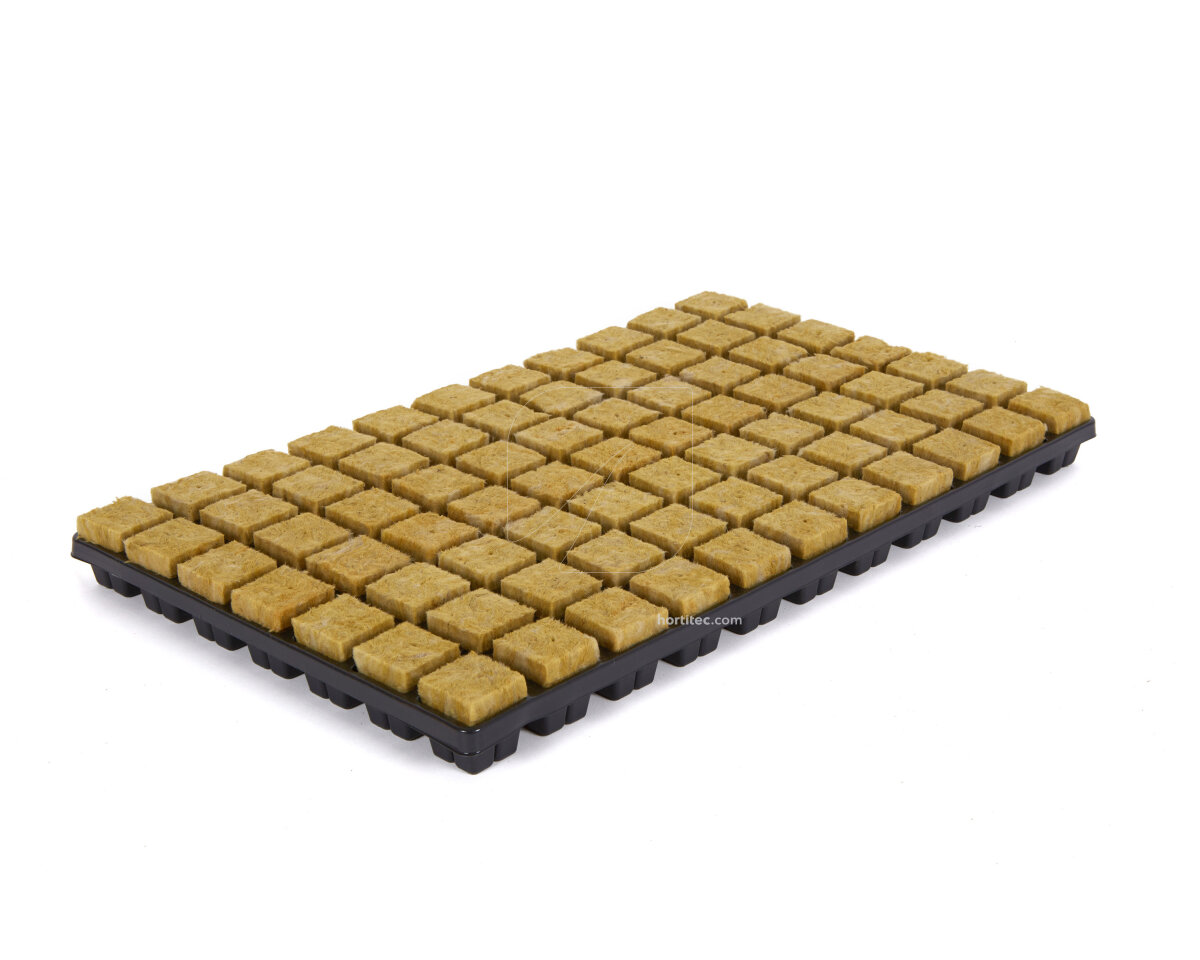Las dimensiones de la lana de roca son 3,5 x 3,5 x 4 cm. O 2,5 x 2,5 x 4 cm. Y se sirven en una bandeja de plástico. Este taco pequeño se usa principalmente para hacer esquejes, aunque también se puede usar para siembras.