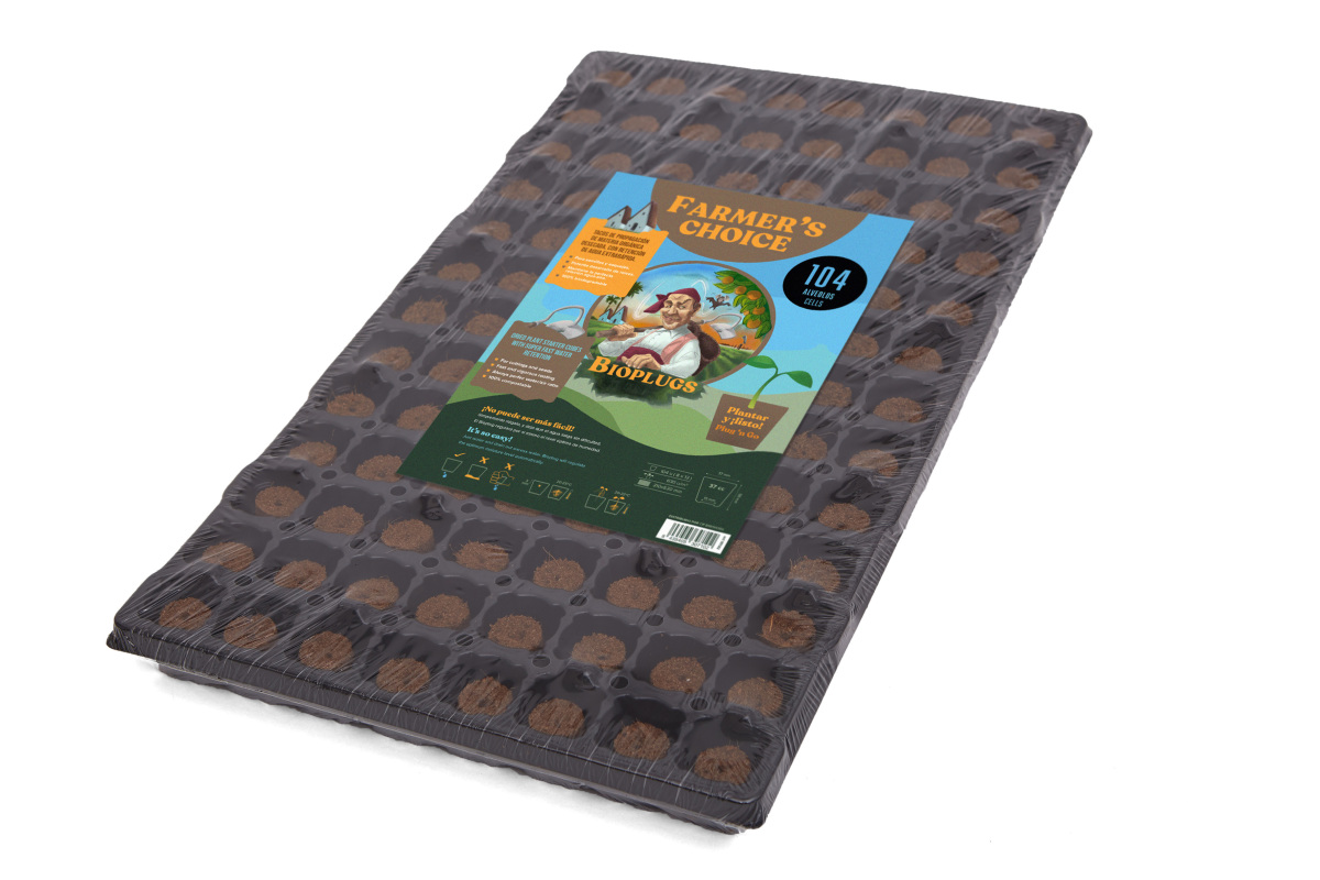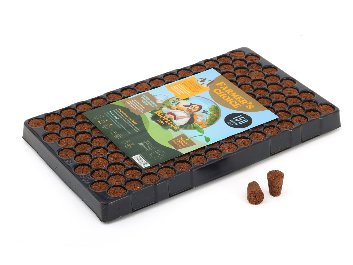 Las bandejas de Bioplugs de Farmer’s Choice, son los mejores tacos de propagación de materia orgánica desecada, con retención de agua extra rápida. Simplemente riégalo y deja que el agua salga sin dificultad. El Bioplug regulará por sí mismo el nivel óptimo de humedad.