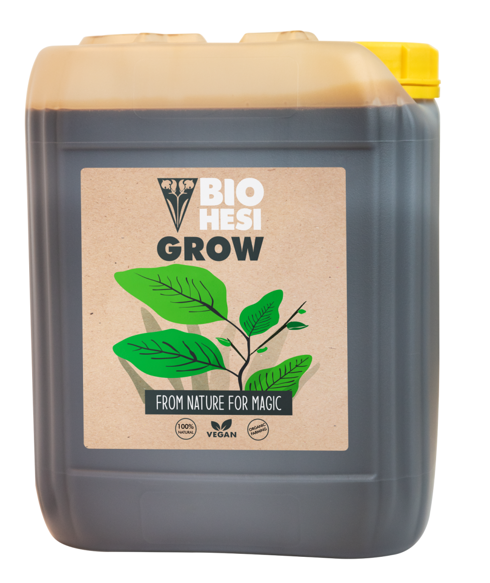 Bio Hesi Grow es un abono biológico líquido NPK 4-0,5-5 apto para todos los métodos de cultivo para la fase de crecimiento.