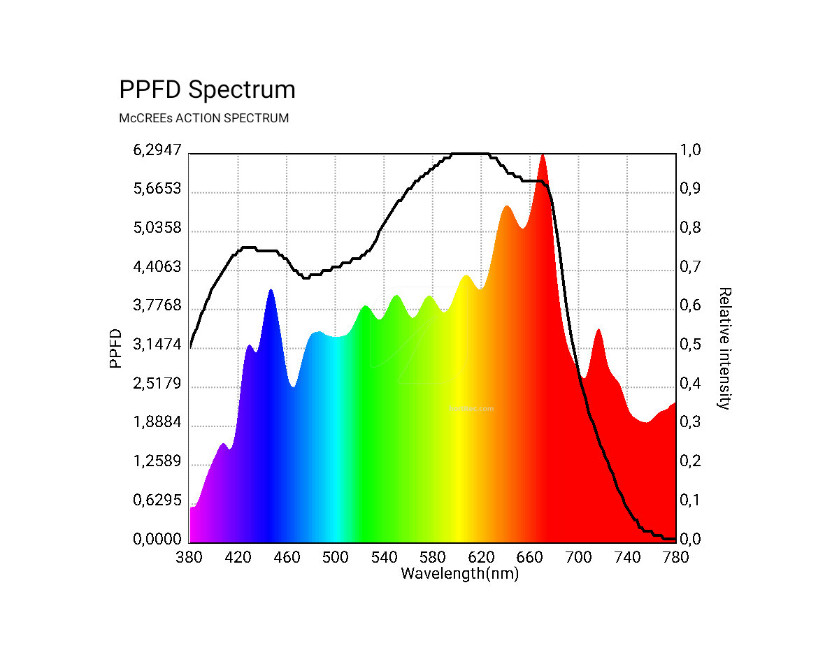 - 3100K Mixta, que es para ambas fases de crecimiento y floración, aunque realmente es una bombilla para plantas de rápida floración, ya que hay un aumento de gamas de rojos.