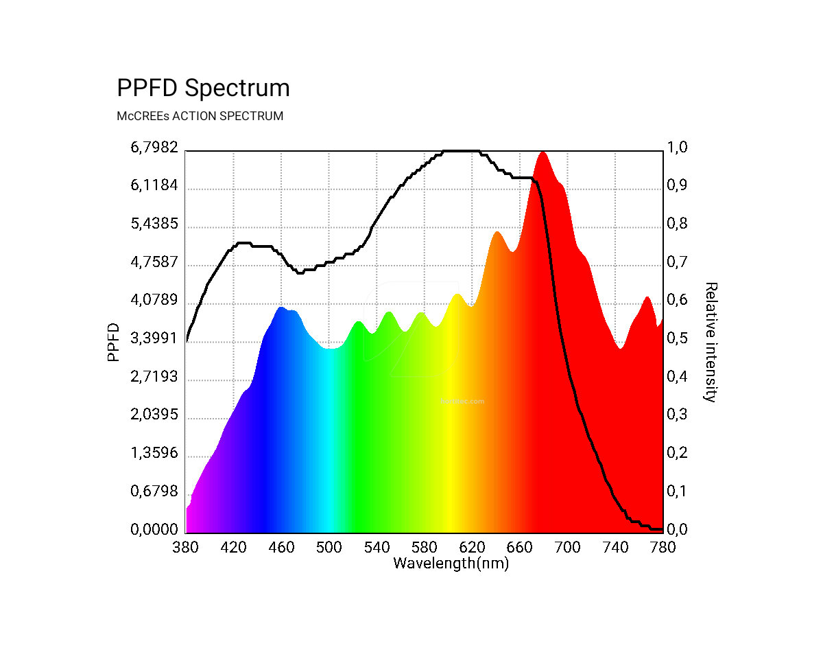 • 3100K Mixta, que es para ambas fases de crecimiento y floración, aunque realmente es una bombilla para plantas de rápida floración, ya que hay un aumento de gamas de rojos.