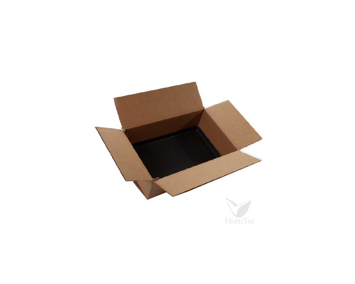 Esta bandeja y Refc#999997, sirven para el transporte de pequeñas plantas sin que estas sufran golpes o les de la luz. La bandeja termoformada encaja perfectamente dentro de la caja y recoge todo el drenaje que puedan liberar las bandejas de alveolos o macetas que se van a transportar.