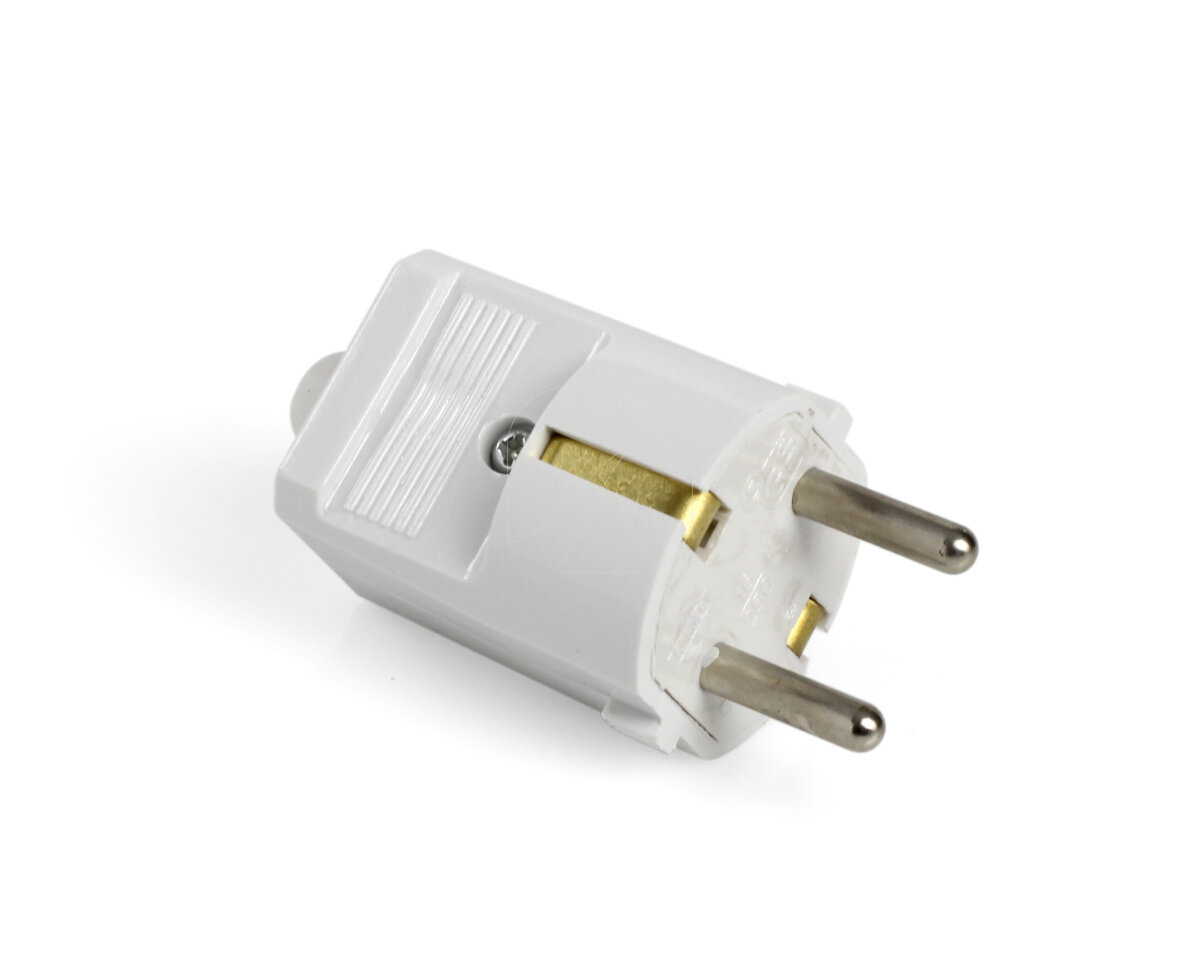 Conector macho de plástico para cable manguera. Color Blanco.