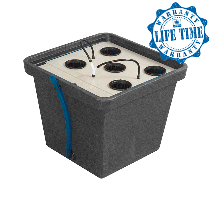 Con un depósito de fácil acceso de 45 litros CultiMate Aero ofrece muchos beneficios, y gracias al uso de rociadores y macetas de red para sostener tus plantas, CultiMate Aero no necesita sustrato más allá de unos pocos guijarros de arcilla reciclada.