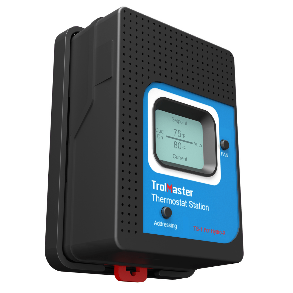 TS-1 Thermostat Stations are designed to replace a thermostat connected to a conventional cooling-only HVAC unit. The TS-1 connects to the HVAC system using the same low voltage thermostat wire, and has the standard color-coded wiring as most thermostats. The Hydro-x allows for independent day and night settings for each of the (4) TS modules, so a single Hydro-X system can control multiple HVAC systems.