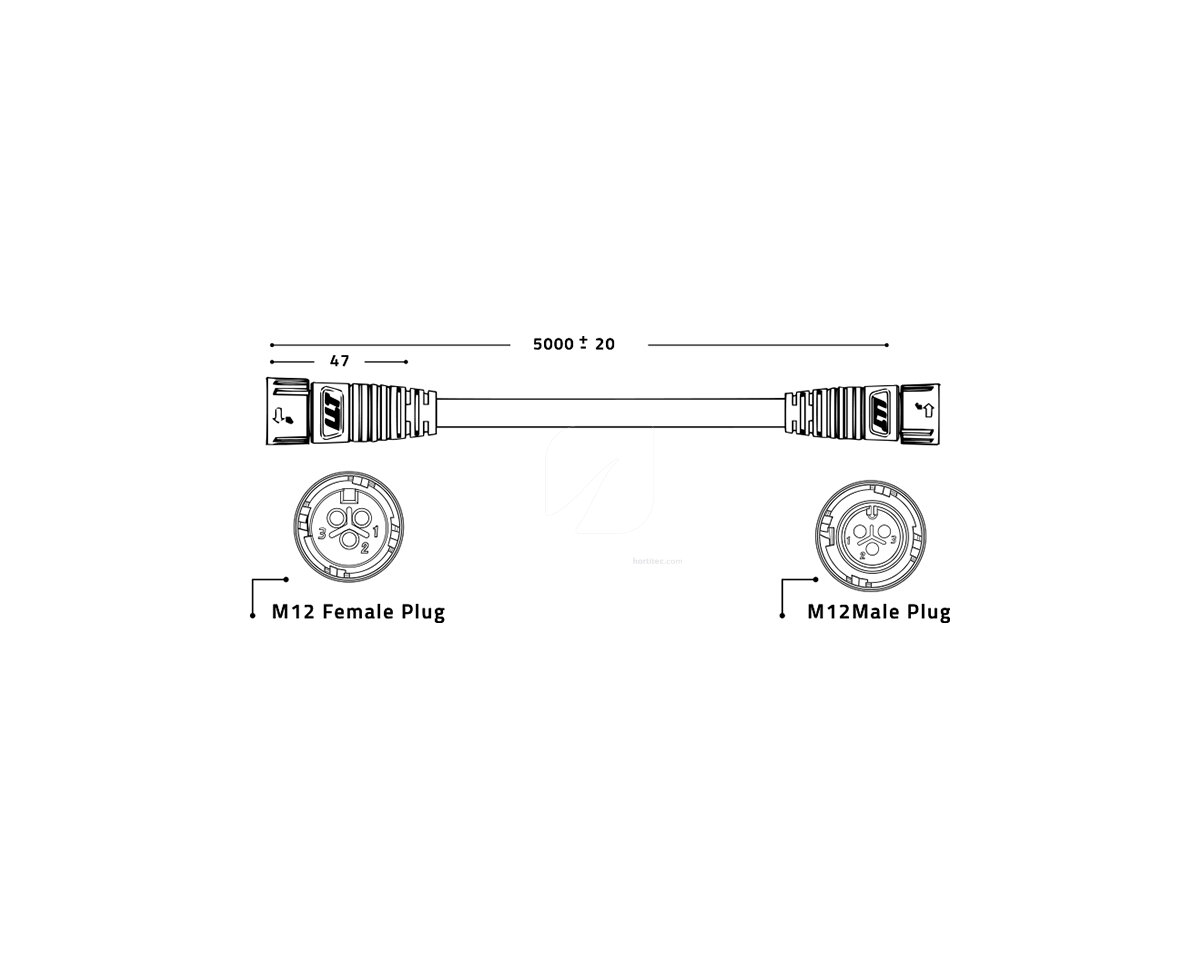 Con el cable de control en cadena conseguirás una conexión estable y sin interferencias, simplemente conectas el enchufe macho autoblocante M12 en la salidad de la estructura LED de salida de señal y el enchufe hembra autoblocante M12 en la entrada de la estrucura LED de entrada de señal del siguiente equipo.