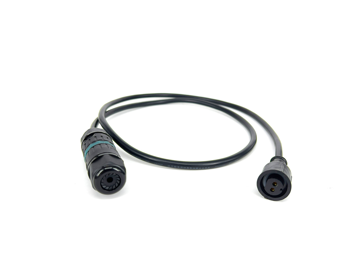Cable de alimentación compatible con el Ref#600267 con un extremo con clema IP68 y hembra de 2 pin en el otro.