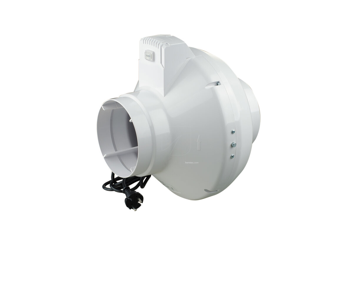 Está construido en plástico ABS y proporciona dos caudales distintos de extracción para adaptarse a las necesidades del cultivador que generalmente puede adaptar estos caudales a diversas condiciones o necesidades máticas (día/noche o verano/invierno).