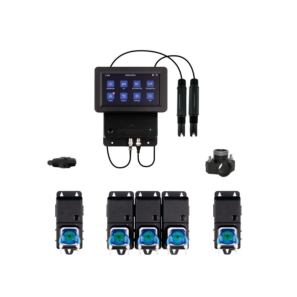 El Kit Aqua Master C800 Pro Inline con bombas C10 y C30 es una solución profesional de control automático en línea de pH y dosificación avanzada de nutrientes (EC), diseñada para sistemas de riego técnicos donde se requiere monitorización continua y regulación precisa directamente en el flujo de agua.