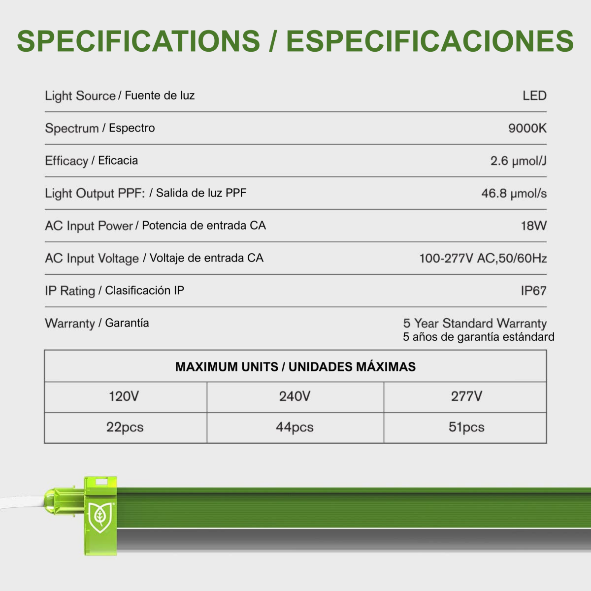 La FloraFlex 18W Incubator LED Clone Light es una solución de iluminación especialmente diseñada para etapas de clonación, esquejes y crecimiento inicial de plántulas. Cada caja incluye dos tiras LED de 18 W con espectro de 9000 K que proporcionan una luz suave y uniforme, ideal para estimular el desarrollo de raíces y crecimiento temprano sin generar exceso de calor. Su diseño resistente al agua con conectores sellados permite instalar múltiples tiras en cadena (hasta 100 en un circuito de 20 A), lo que facilita la expansión del sistema en racks de propagación o estantes.