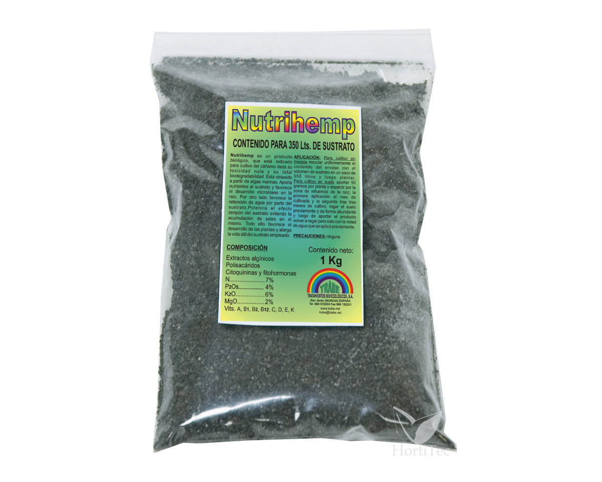 Nutrihemp es un enriquecedor de sustratos ya que suministra a la tierra y las plantas sustancias nutritivas, elementos trazas y ácidos húmicos y aminoácidos.