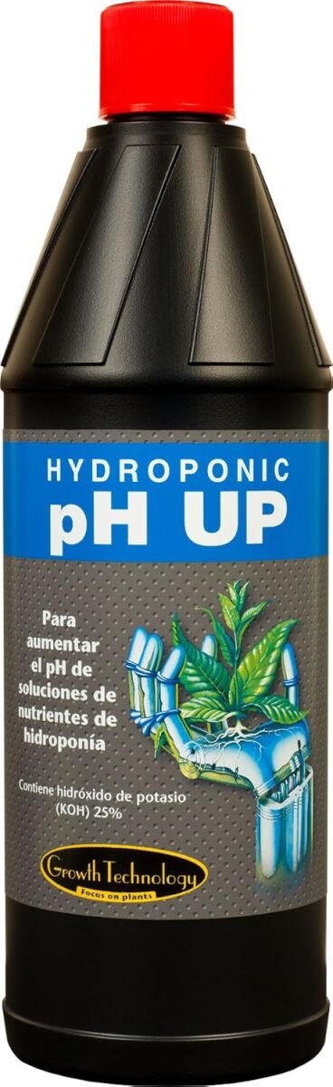 Regulador de pH: Es un líquido altamente alcalino diseñado para elevar el nivel de pH en el agua de riego o en las mezclas de nutrientes. Esto asegura que las plantas absorban mejor los nutrientes.