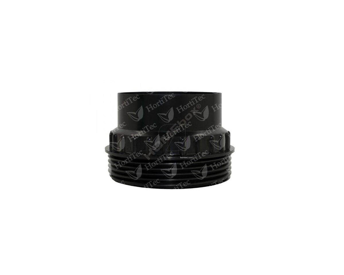 Pieza de plástico, tipo ABS, muy fuerte, para unir tubos de extracción, extractores o ventiladores, para la marca Homebox. Tiene un diámetro de 160 mm para la boca del extractor y de 125mm para el tubo o filtro.