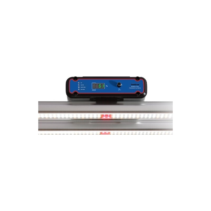 El Modelo-H Plus es una luminaria para cultivos de alta intensidad lumínica. Con 3368 chip SMD de alta eficiencia (Samsung LM301B/LH351H) para un total 720w, resultando en un aumento del PPF 18% con respecto al modelo H. Podrás controlar la intensidad lumínica directamente en el cuerpo de la luminaria o controlar individualmente cada espectro (UV, Blanco, Rojo profundo y Rojo lejano) para crear tus propias recetas ajustada a tus plantas en cada etapa.