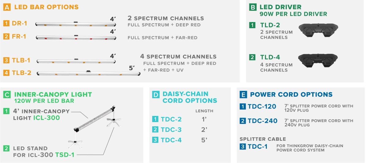 La barra LED de 5′ con 4 canales de espectro (blanco + rojo intenso + rojo lejano + UV) para el sistema LED Model One, TLB-2, es una barra de luz LED avanzada de 5′ que cuenta con cuatro canales de espectro, que incluyen espectro completo, rojo intenso, rojo lejano y UV. Cuando se conecta a un controlador TrolMaster, la TLB-2 puede replicar las propiedades de la luz solar natural al permitir que el usuario ajuste el espectro de luz real. Esto permite a los cultivadores personalizar la receta de luz deseada para sus plantas, aprovechando los cuatro canales de espectro controlables por separado. Cada TLB-1 proporciona 90 vatios de luz.