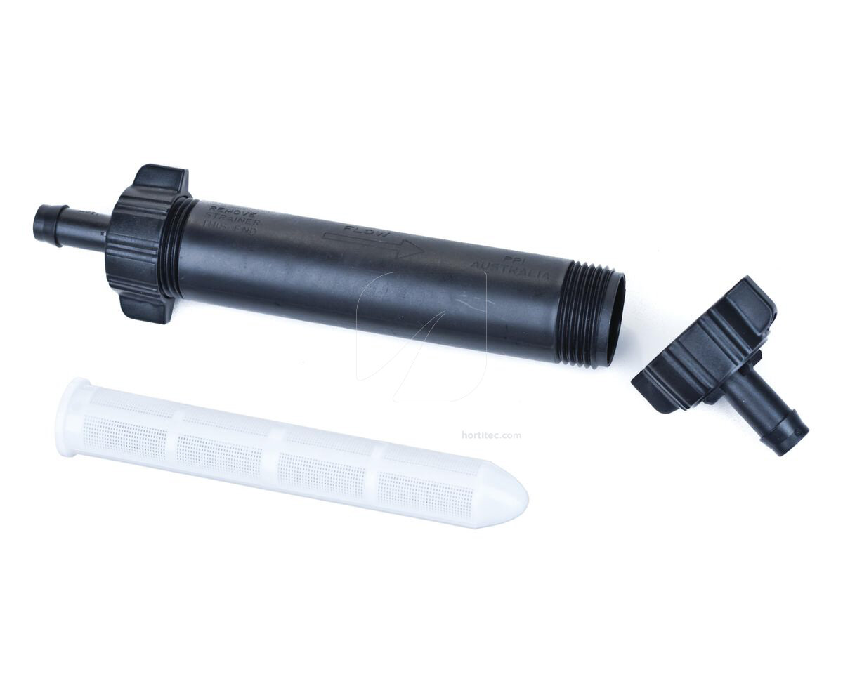 Filtro en línea para manguera de 16mm, para accesorios AutoPot, que permite la conexión entre la manguera y el depósito de agua.