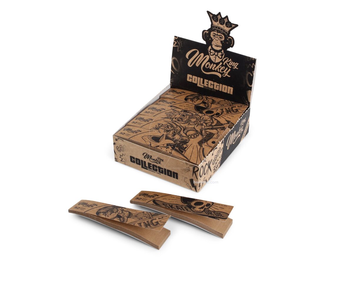 La caja incluye 40 libritos con 32 filtros cada unidad, fabricados en papel sin blanquear. Cada librito tiene un diseño diferente, con los dibujos de Monkey King.