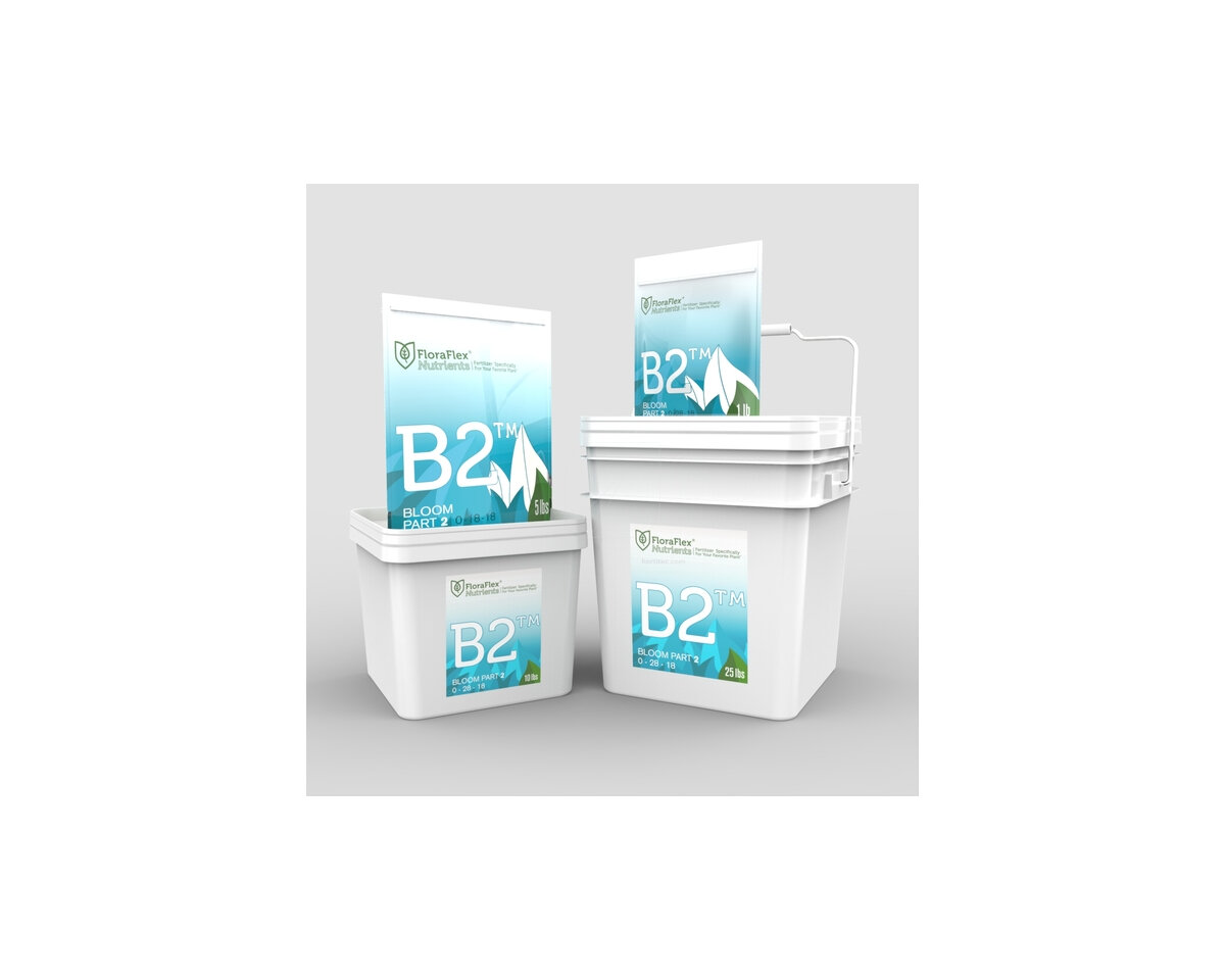 FloraFlex ha diseñado los nutrientes de más alta calidad, más limpios y con mayor pH estable en el mercado. Estamos orgullosos de ofrecerle la primera línea de nutrientes de FloraFlex: una fórmula en polvo de dos partes fácil de usar para las etapas Vegetativa y Bloom .