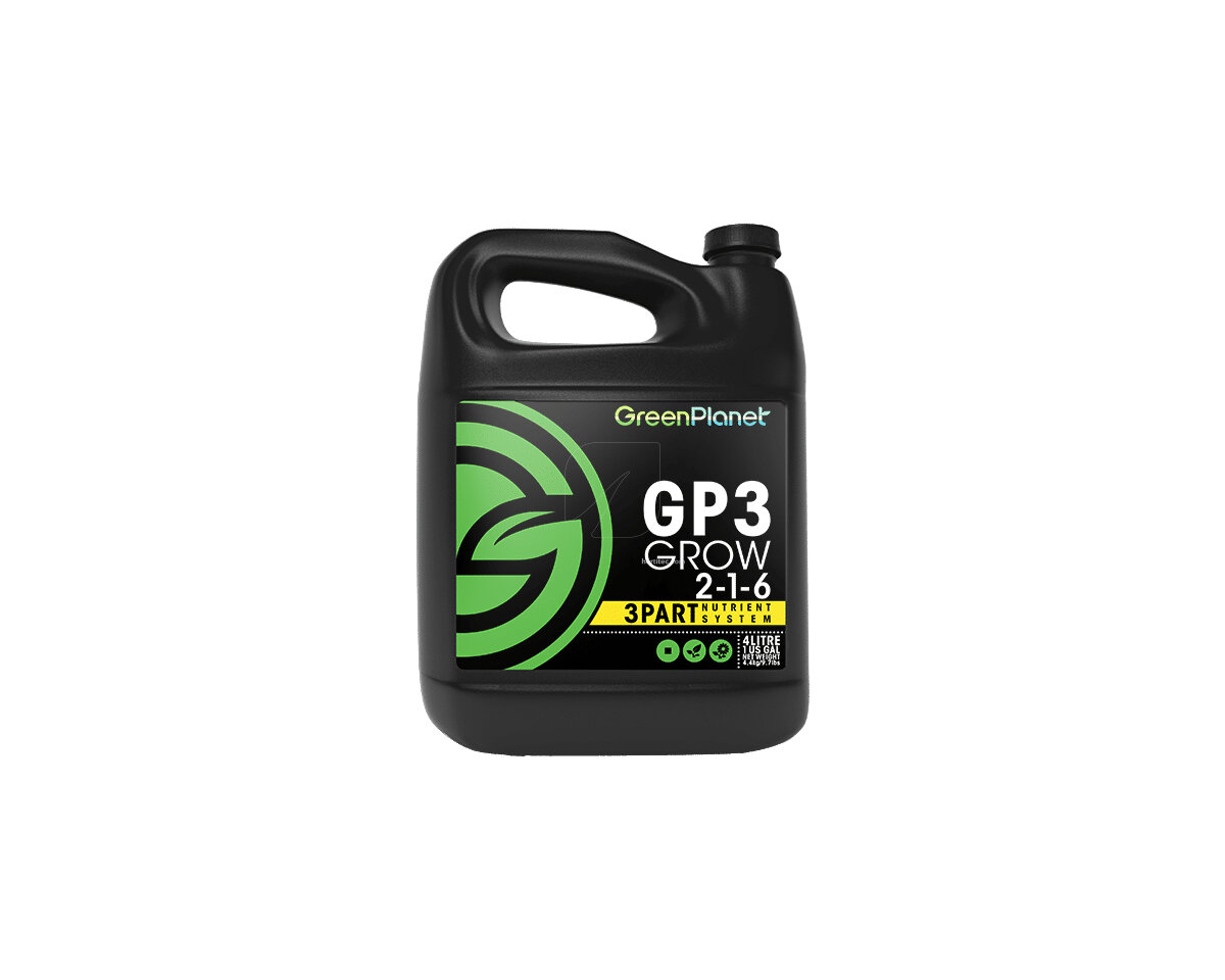 El GP3 Grow, es uno de los tres nutrientes que sirve para potenciar el crecimiento. Este junto al Bloom y Micro son la combinación de todos los micronutrientes primarios y secundarios.