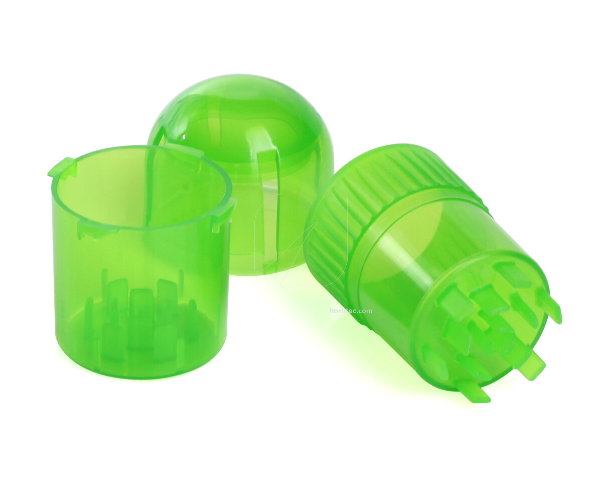 Contenedor hermético y estanco con grinder integrado. Los compartimentos de almacenamiento y de triturado, herméticos y estancos, fabricados en plástico apto para uso alimentario, conservan las hierbas seguras, protegidas y frescas y también evitan la fuga de olores indeseables. Los contenedores, cuando están cerrados, pueden mantenerse debajo del agua sin que ésta penetre.