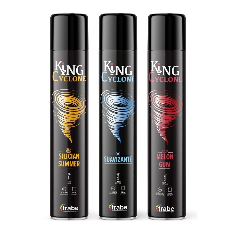 Cuando el olor se instala y no basta con “perfumar”, necesitas potencia de verdad. King Cyclone es un ambientador profesional en aerosol formulado para eliminar y camuflar malos olores intensos con una aplicación rápida y directa. Con una sola pulsación deja el ambiente notablemente más limpio y agradable, ideal para espacios donde el aire se carga con facilidad (salas, trasteros, zonas de trabajo, tiendas, etc.).