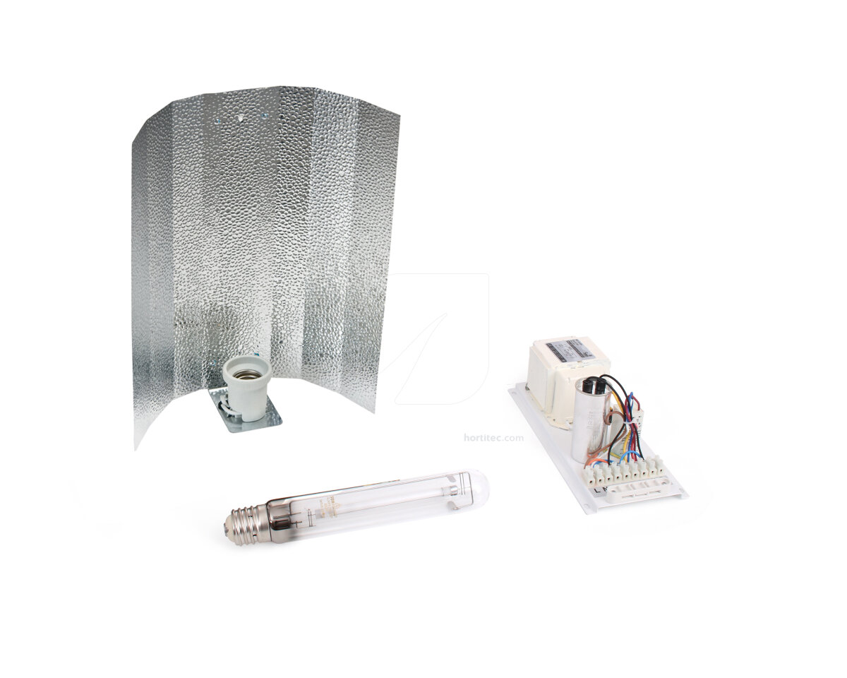 Los equipos de iluminación constan de balastro, reflector y lámpara. Los kits más populares son los de Clase II (Magneto y VDL) ya que vienen cableados de fábrica y facilitan el montaje (Plug&Play). Debido a la potencia de las lámparas, los equipos se recomiendan para diferentes superficies de cultivo; en general, los de 250W se usan para 0,5 m², los de 400W se usan para 1 m², los de 600W se usan para 1,5 m² y los de 1000W se usan para 2 m²(se recomienda el uso del Sun Rail para ampliar estas superficies).