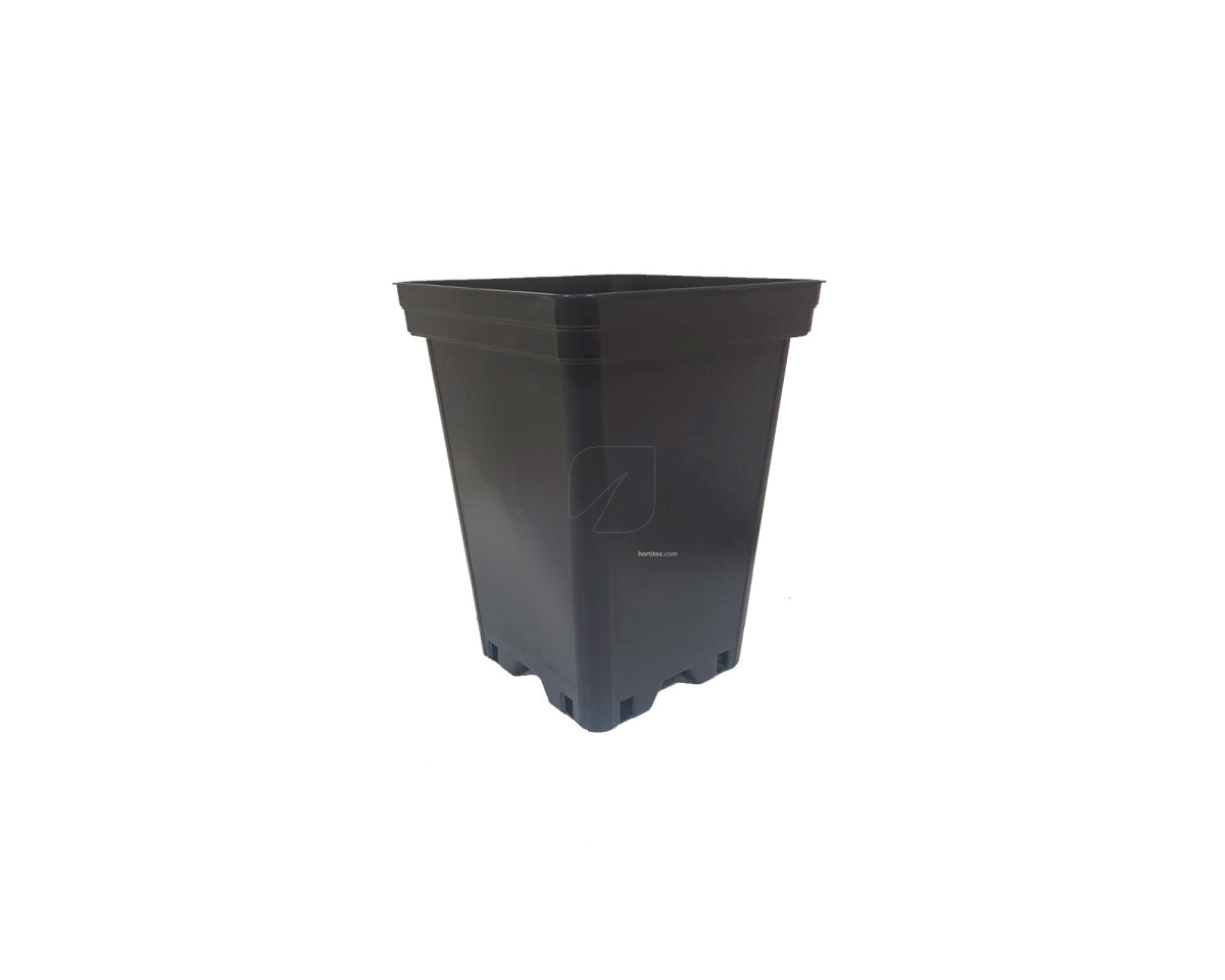 Estas macetas de color negro son sólidas, cuadradas con el fondo elevado para un drenaje sin problemas y para un aprovechamiento máximo del espacio en invernaderos, ideales para cultivos interiores.