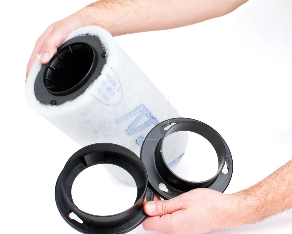 Manguitos de plástico para los filtros Can-Filters. Estos manguitos se conectan fácilmente, sin necesidad de usar herramientas, formando un sellado perfecto.
