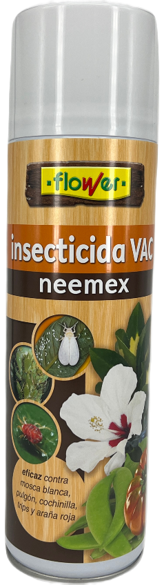 Neemex es un insecticida acaricida de uso doméstico a base de piretrinas, que se presenta en formato aerosol. Mediante contacto e ingestión combate pulgón, mosca blanca, trips, araña roja y cochinilla.