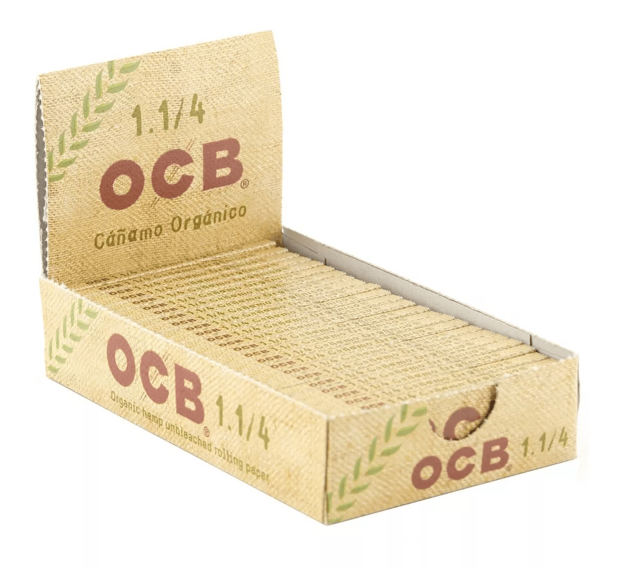 Papel orgánico de la marca OCB, un papel es completamente natural y sin blanquear. Las cajas también están fabricadas con materiales reciclados, usando tintas naturales y goma arábiga natural, lo que lo convierte en un producto respetuoso con el medio ambiente.