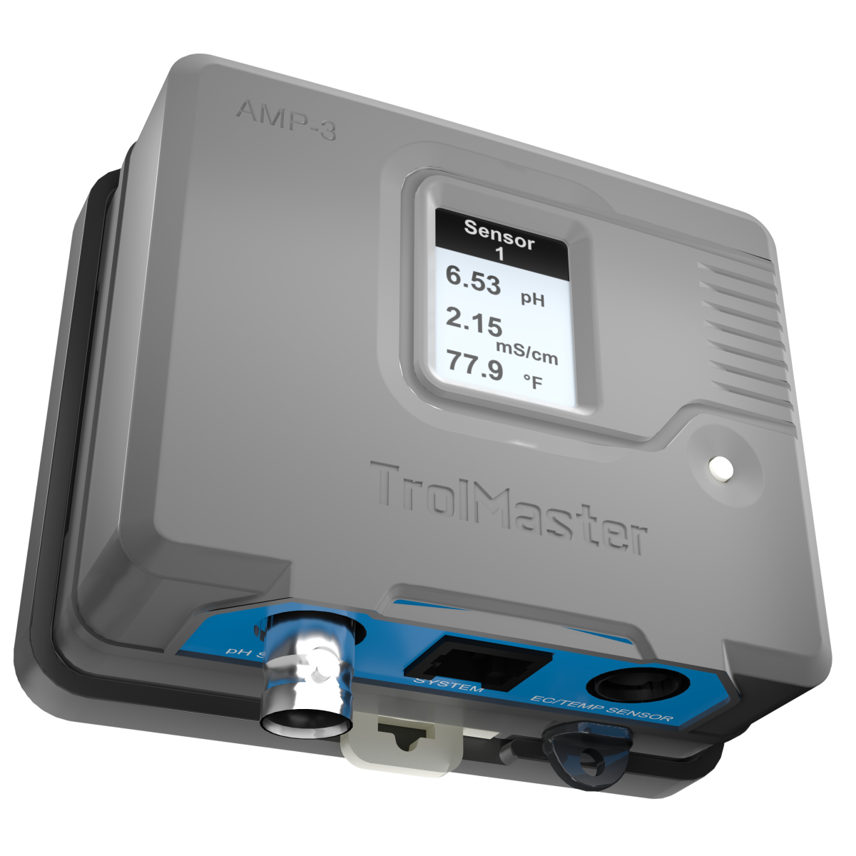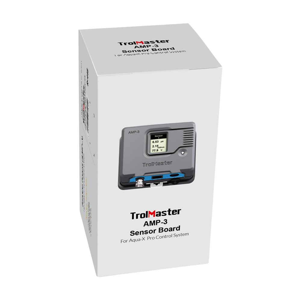 La placa de sensores AMP-3 puede utilizarse como puente entre los sensores (sensor de pH y sensor de EC/Temp) y el controlador Aqua-X Pro/Tent-X.