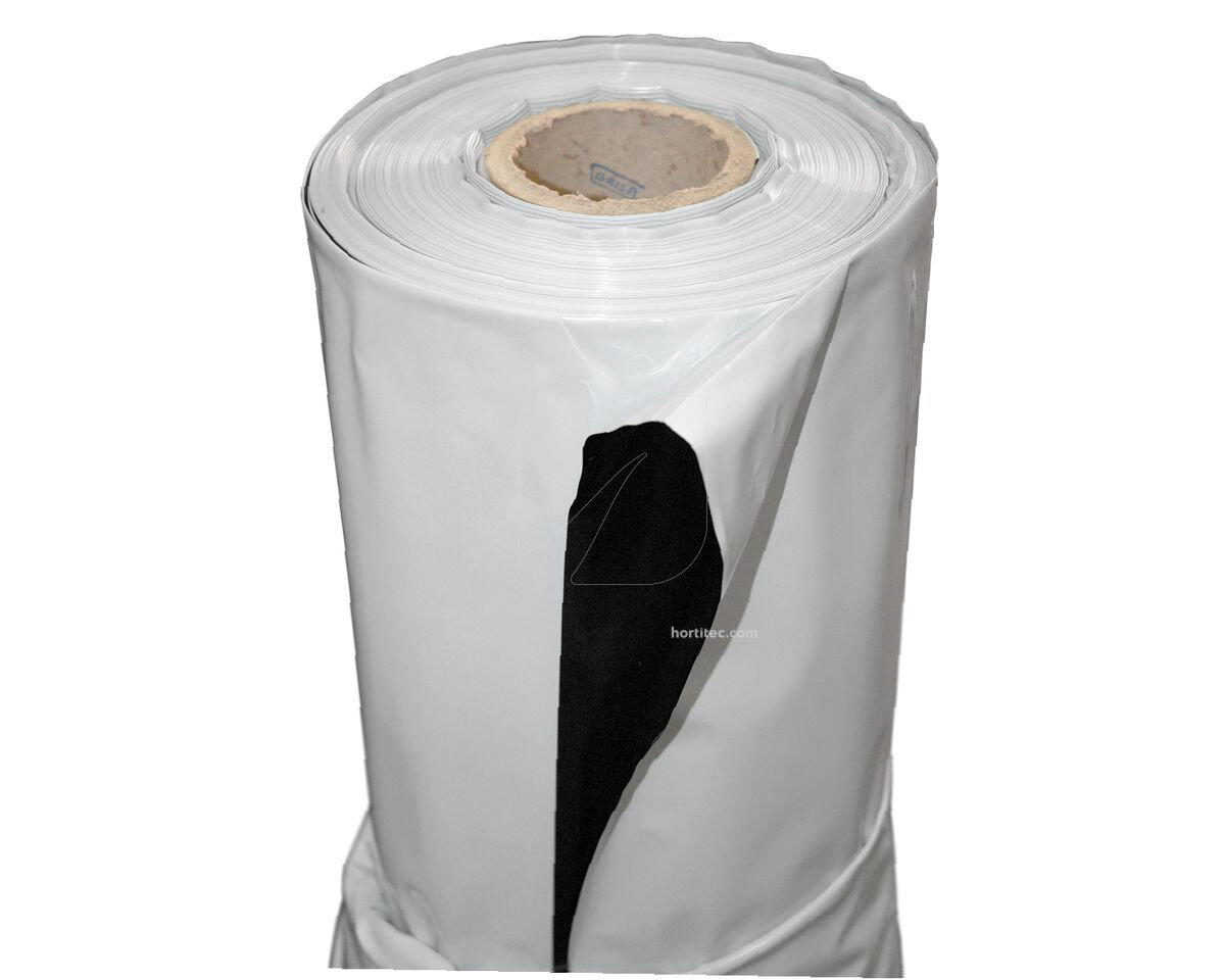 Este plástico de cultivo se trata de una lámina tricapa de LDPE de color blanco por un lado que incrementa la luz en la zona de cultivo y negro por el otro, que reduce la salida de luz al exterior.