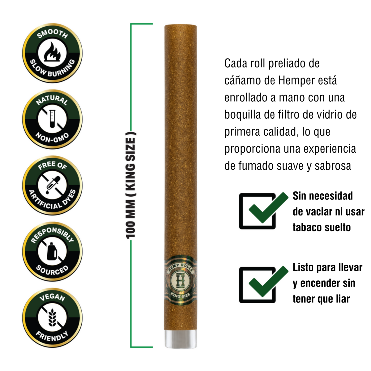 Los Hemper King Size Rolls + Glass Tip son rollos de cáñamo ya enrollados de tamaño King Size, e incorporan una boquilla de vidrio (glass tip) de alta calidad. Cada paquete contiene 2 rollos listos para usar. Este formato “display” está diseñado para tiendas: incluye múltiples paquetes para exhibición.