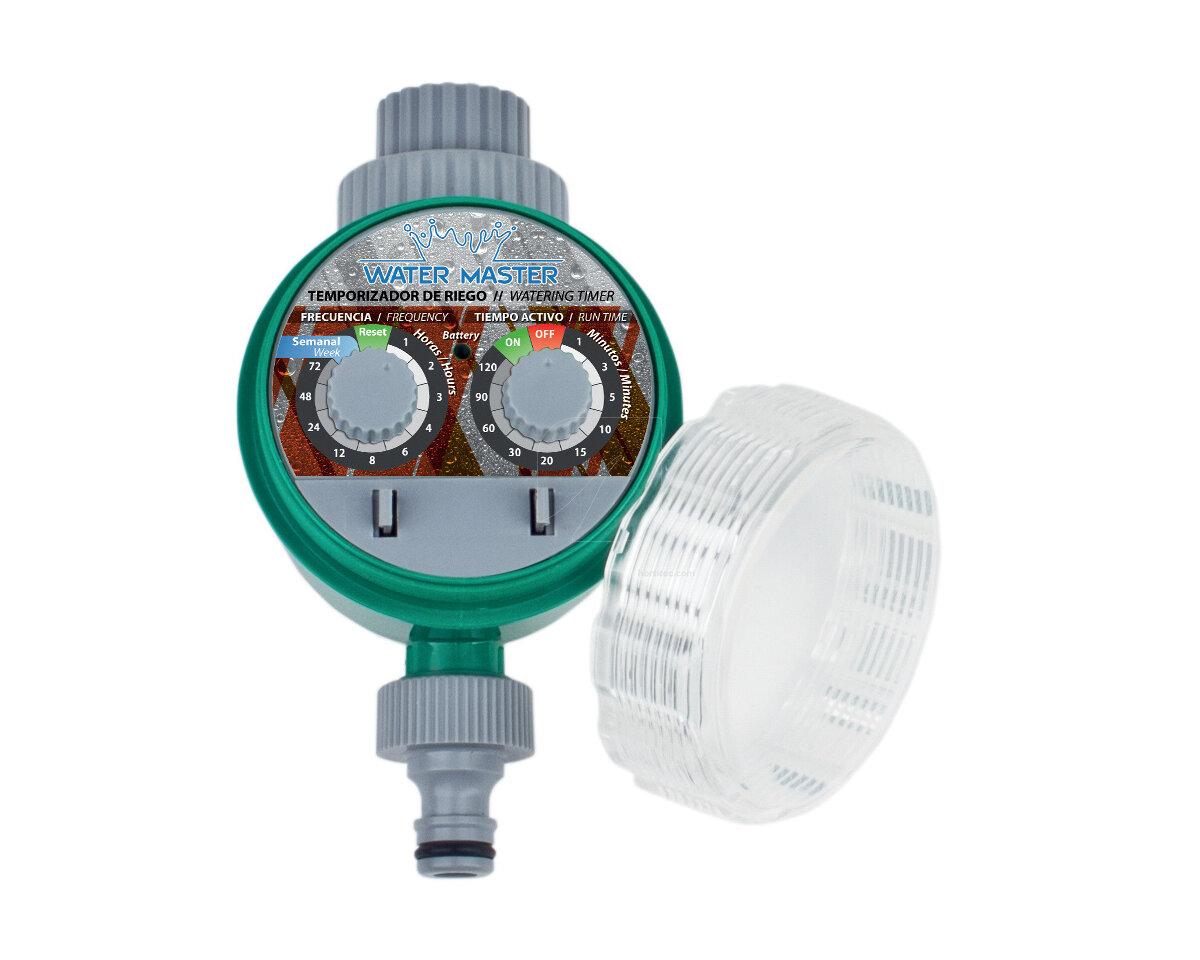 El programador de riego analógico Water Master es una herramienta para crear riego automático. Este programador se debe conectar a un grifo que alimente un sistema de riego.