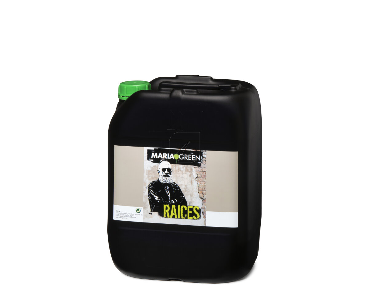 María Green Raíces estimula el desarrollo de las raíces, tanto en semillas como en esquejes. Su potente efecto bioestimulante potencia el crecimiento de las raíces secundarias encargadas de la absorción de nutrientes. Especialmente recomendado en las fases iniciales del cultivo, pero necesario a lo largo de todo el ciclo pues cuantas más raíces, mayor crecimiento y productividad.