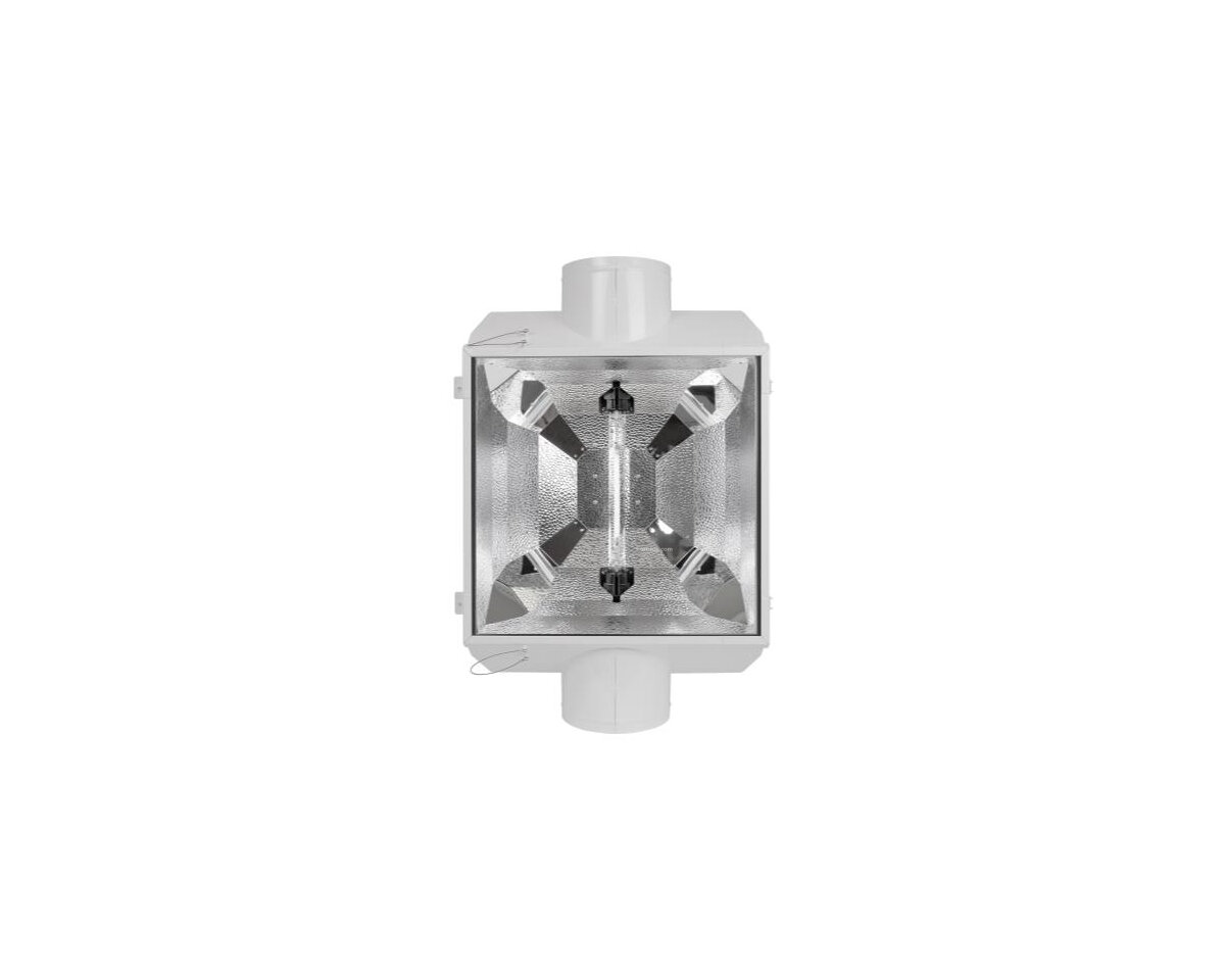 Está fabricado específicamente para lámparas de doble casquillo de horticultura (no incluida). Mejora los valores PAR de la lámpara hasta el 90 % de PAR en 10.000 Horas de uso. Su interior está recubierto de aluminio alemán texturizado con una reflexión del 95%, con inserciones en las esquinas que proporcionan una excelente uniformidad y difusión. Fabricado con los estándares más exigentes para cultivadores profesionales.