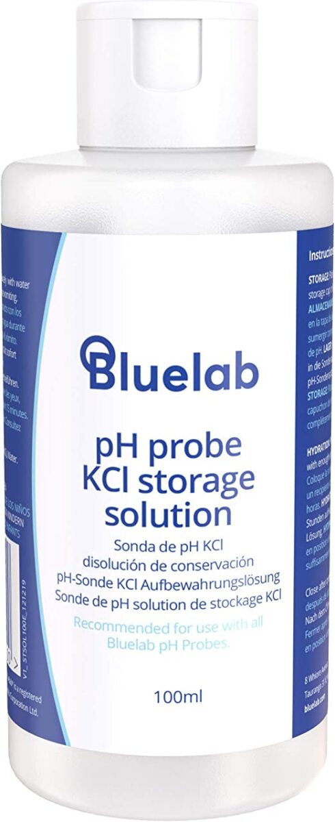 Solución ideal para hidratar y almacenar los productos Bluelab pH. Es Muy importante su cuidado ya que son instrumentos de vidrio sensible. Hay que cuidarlas porque se desgastan más cuando se almacenan en seco.