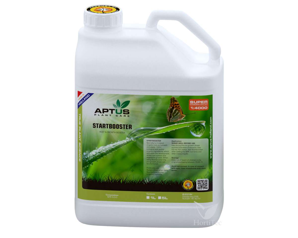 StartBooster es un estimulador radicular y del crecimiento completo y altamente concentrado. Contiene ingredientes activos de alta calidad que proporcionarán a sus plantas un estímulo adicional durante la fase de crecimiento. StartBooster es un producto 100 % orgánico fácilmente asimilado por la planta y tiene un efecto benéfico doble, tanto en el sistema radicular como el en proceso de crecimiento de la planta.