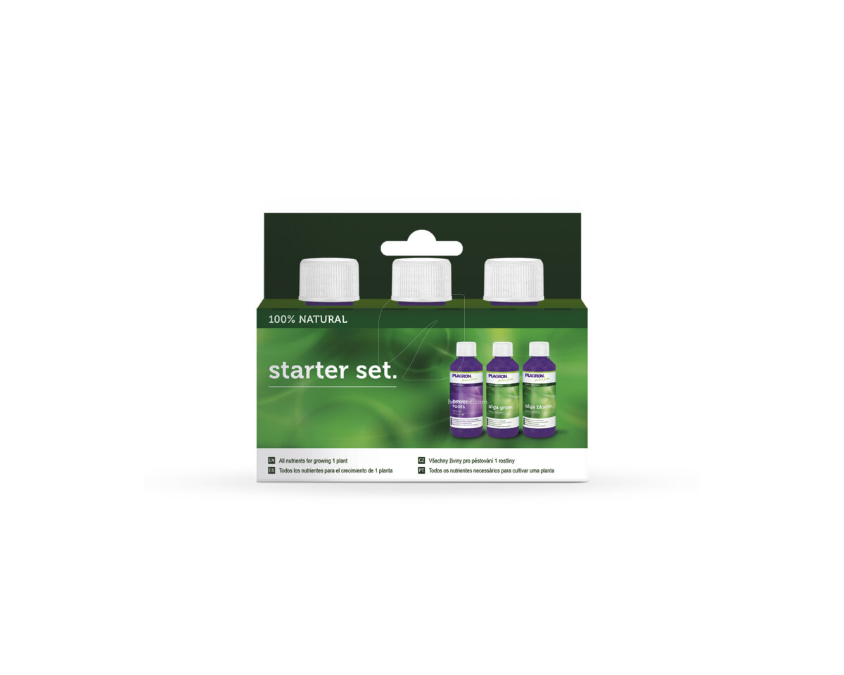 Kit creado por Plagron para los cultivadores primerizos: un set en el que podrás encontrar los nutrientes básicos junto al estimulador de raíces, Power Roots.