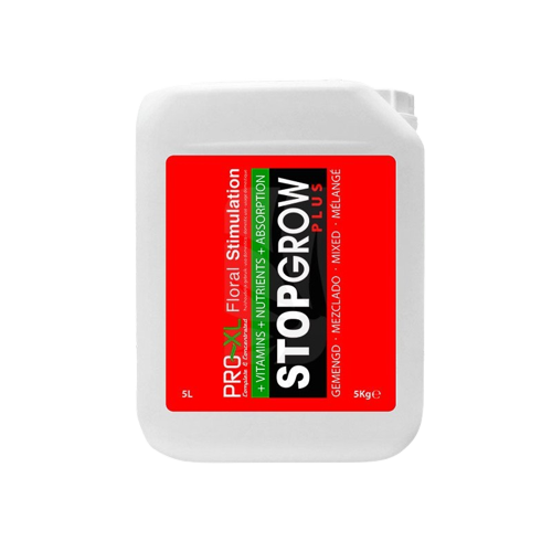 Stop Grow es tu aliado ideal para regular el crecimiento de las plantas, permitiendonos detener el desarrollo vertical así como estimular la floración. Al absorverlo nuestras plantas frenan el crecimiento y comienzan a producir los primeros pelos que nos indican que está en floración.