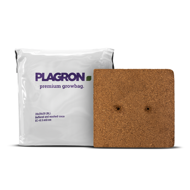 La bolsa de cultivo Premium Growbag de Plagron combina un medio de cultivo y un recipiente para cultivar, en un solo producto. Reduce la mano de obra, ya que no es necesario rellenar o limpiar una maceta antes de usarla. El sustrato comprimido se compone de fibra de coco de alta calidad, lo que proporciona la base perfecta para las plantas en cada fase de su ciclo de vida. La fibra de coco está lavada, tamponada y no contiene fertilizantes.
