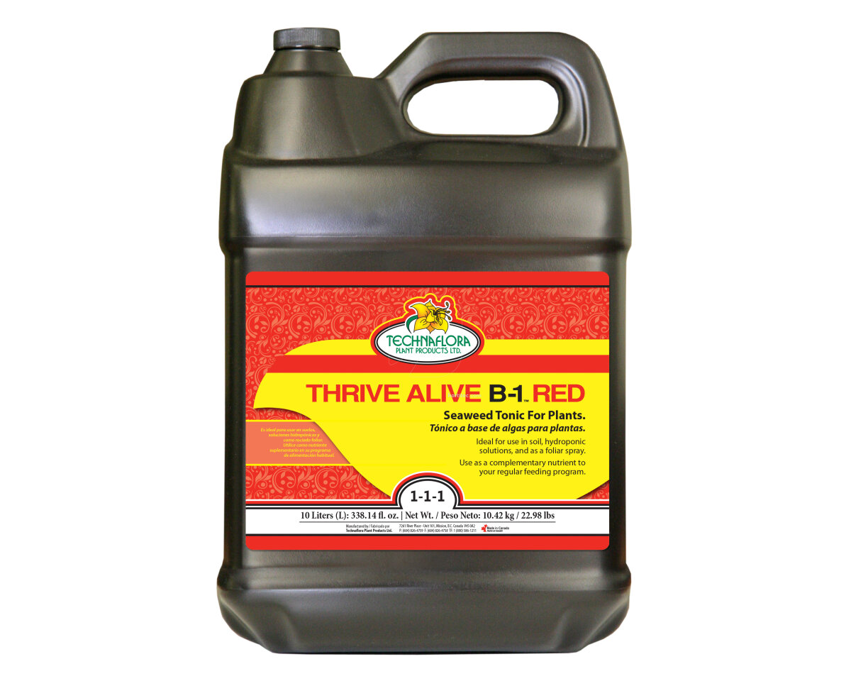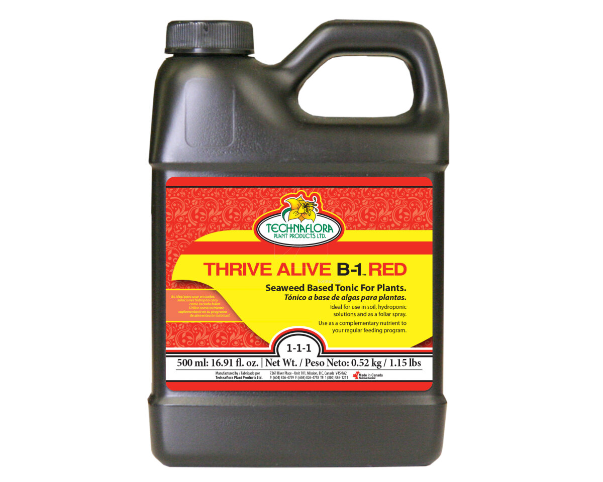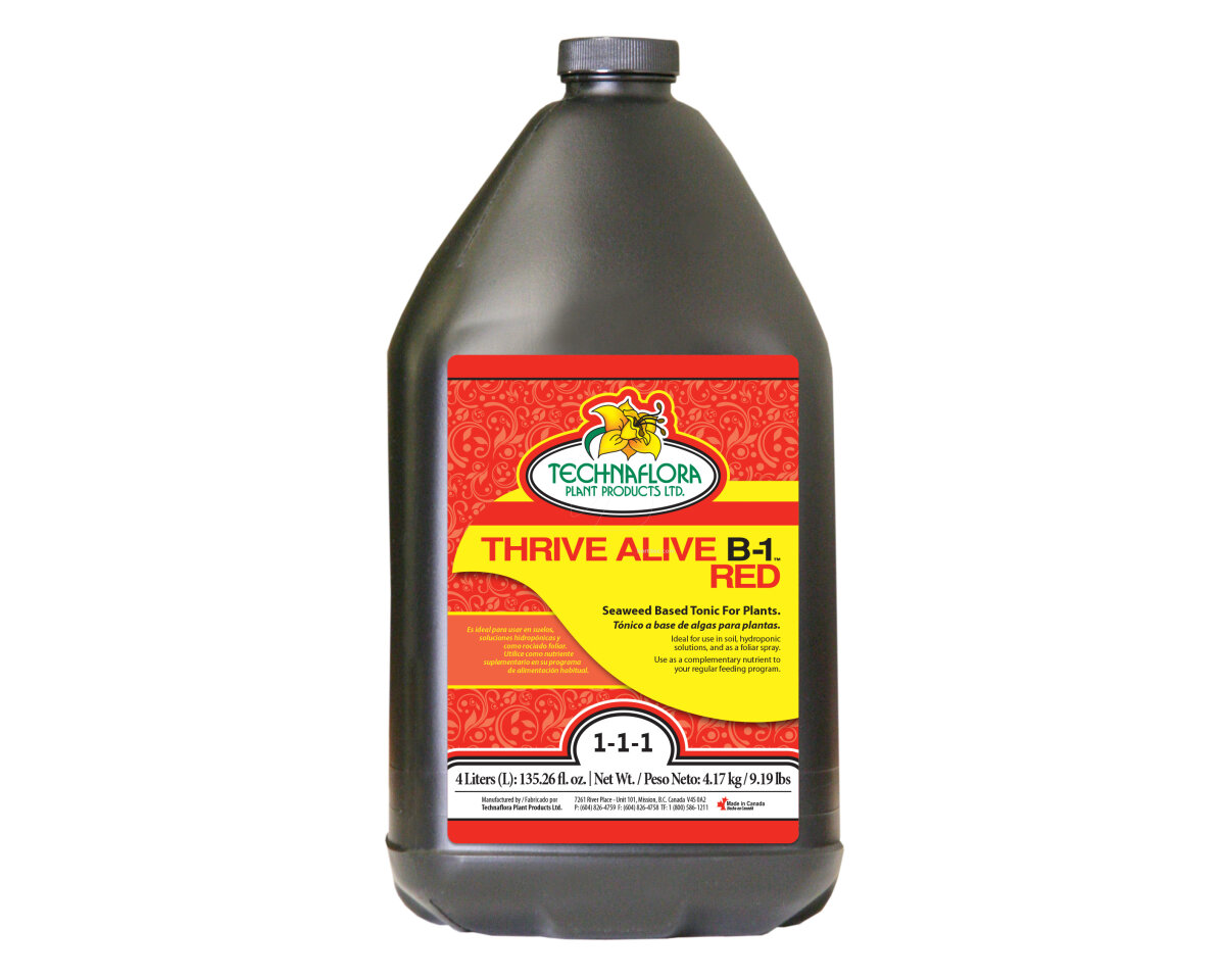 Thrive Alive B-1™ es un poderoso tónico preventivo y restaurador de uso general para plantas que promueve el crecimiento vegetativo rápido y exuberante. Asegura el éxito de cosechas florales a través de la promoción de la floración profusa durante el florecimiento. Su fórmula profesionalmente balanceada contiene vitaminas y nutrientes que se encuentran en algas pardas marinas de primera calidad de Columbia Británica.