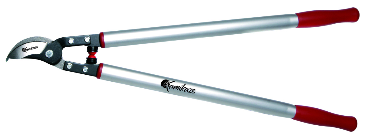 Tijera de 2 manos tipo bypass con capacidad de corte de 45mm en madera verde.