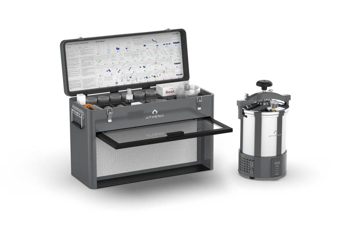 El Athena Tissue Culture Kit es un conjunto completo diseñado para realizar cultivos de tejidos de plantas de manera eficiente y portátil. Este kit está diseñado para preservar y revitalizar genéticas de plantas, eliminando infecciones como el virus latente del lúpulo (HLV).