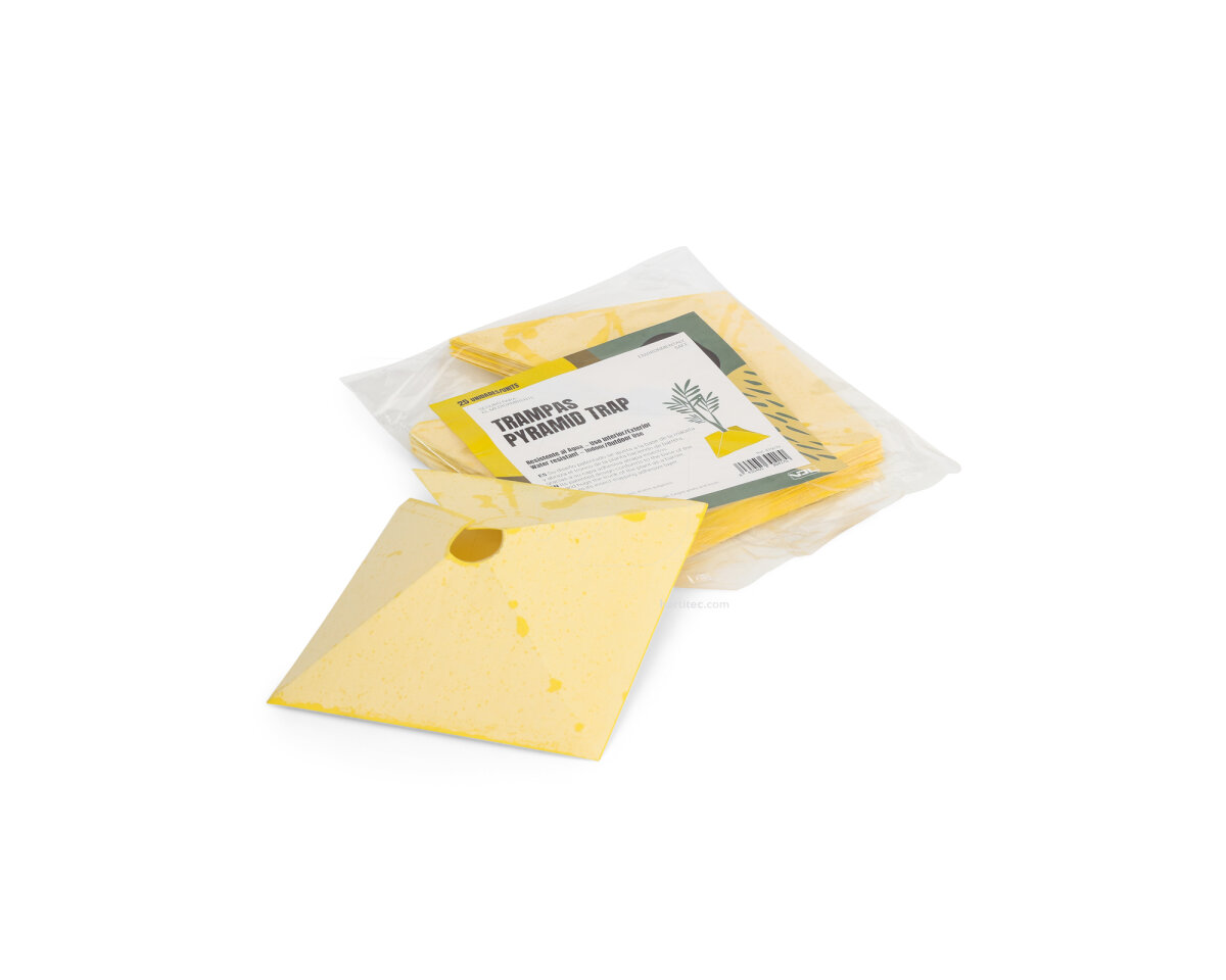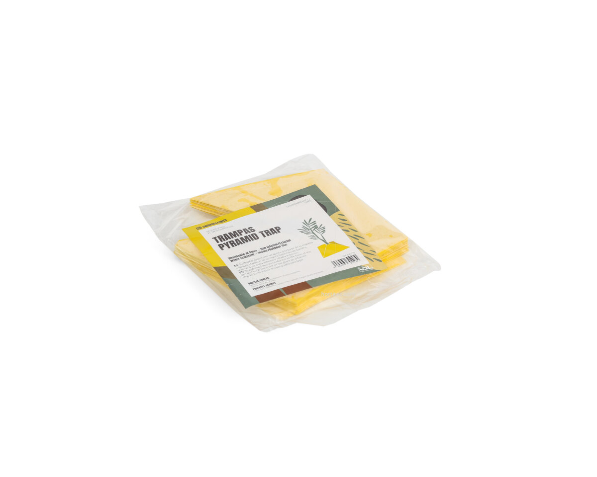 El diseño patentado de las trampas Pyramid Trap, se ajusta a la base de la maceta y abraza el tronco de la planta haciendo de barrera, gracias a su capa adhesiva atrapa-insectos.